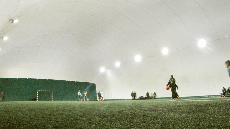Terenul este acoperit cu balon, permitand folosirea acestuia indiferent de anotimp sau de vreme, dat fiind ca asigura o izolare termica foarte buna. Presiunea este mai scazuta, nu se face condens si se diminueaza mult ecoul.